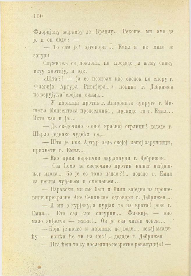«Шта?! — ја се позивам као сведок по спору г. Флавија Артура Ривијера....» повика г. Дебрижен не верујући својим очима....