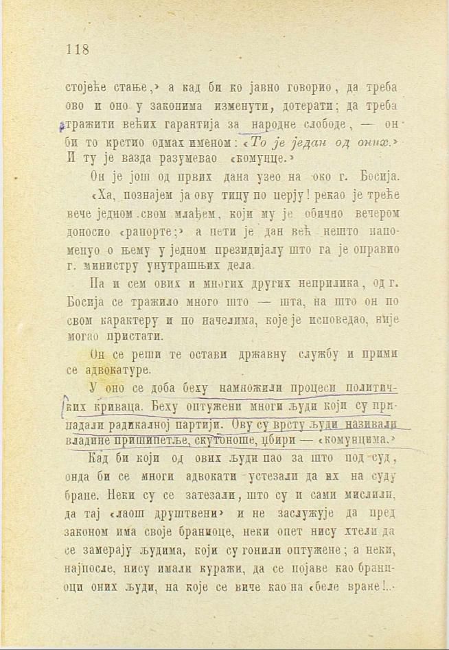 стање,» а кад би ко јавно говорио, да треба ово и оно у законима изменути, дотерати; да треба тражити већих гарантија за народне слободе, — он би то крстио одмах именом: «То је један од оних.» И ту је вазда разумевао «комунце.» :