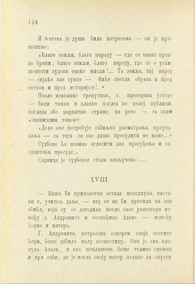 — Наша би приповетка остала неподпуна, настави г. учитељ даље, — кад се не би вратили на она збића, која су се догодила после оног разговора између г. Андроните и госпођице Аделе — између ћерке и матере.