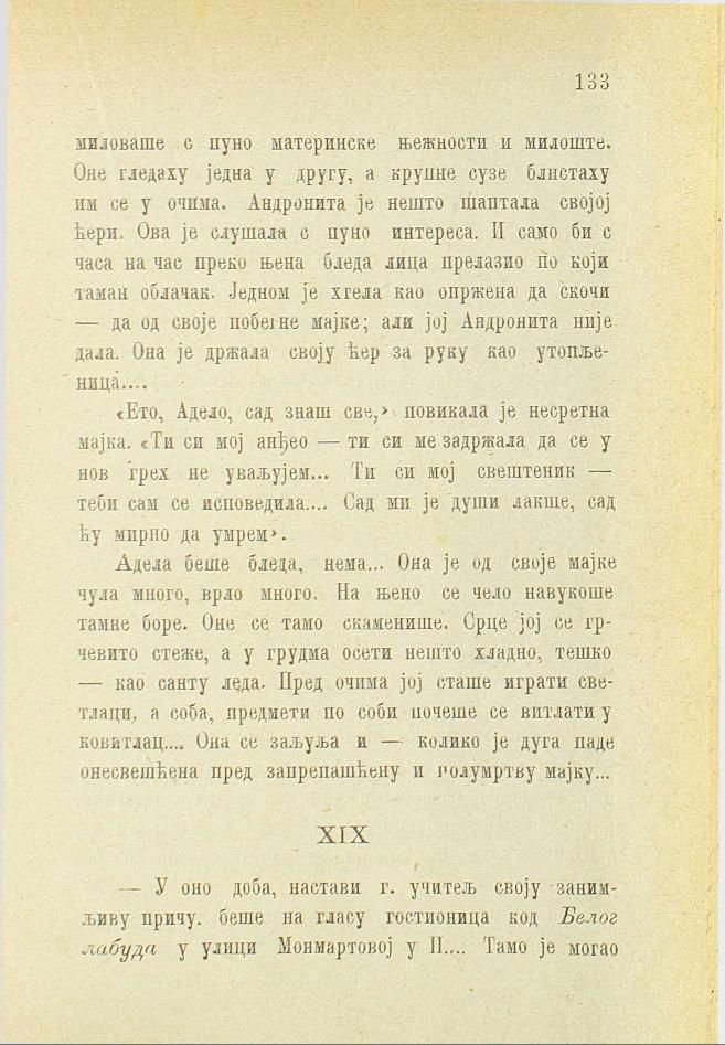 — У оно доба, настави г. учитељ своју занимљиву причу, беше на гласу гостионица код Белог лабуда у улици Монмартовој у П.... Тамо је могао