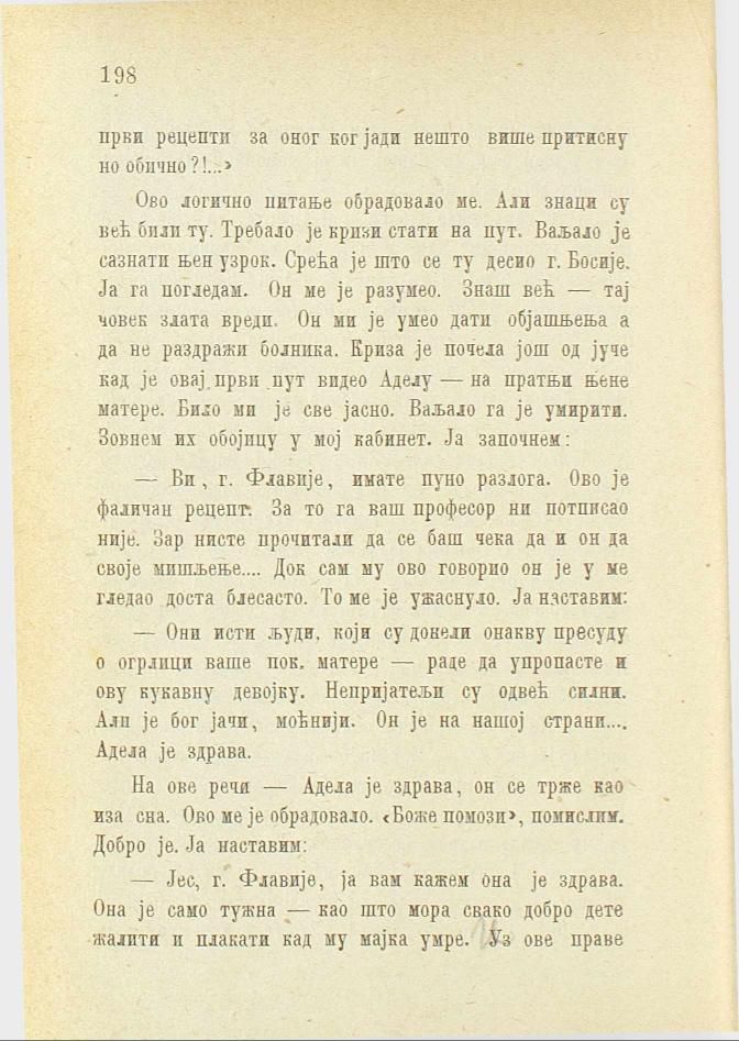 — Јес, г. Флавије, ја вам кажем она је здрава. Она је само тужна — као што мора свако добро дете жалити и плакати кад му мајка умре. Из ове праве