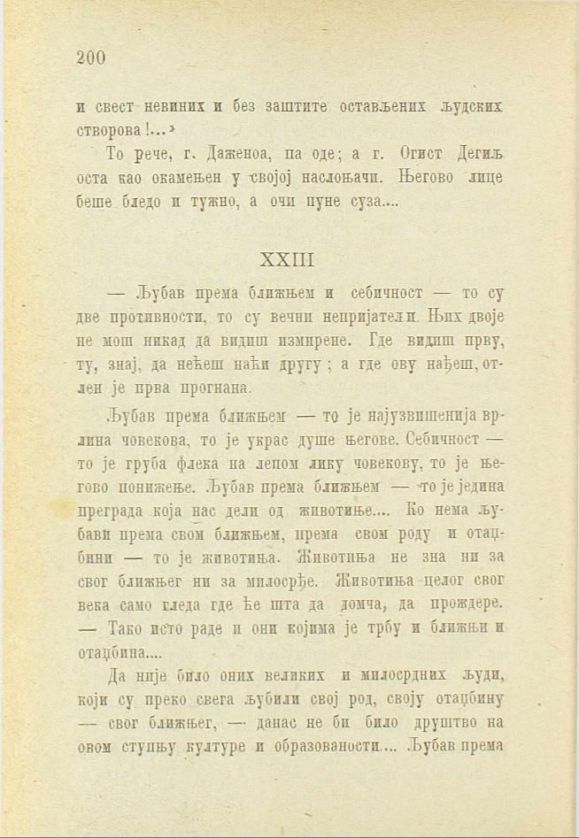 — Љубав према ближњем и себичност — то су две противности, то су вечни непријатељи. Њих двоје не мош никад да видиш измирене. Где видиш прву, ту, знај, да нећеш наћи другу; а где ову нађеш, отлен је прва прогнана.