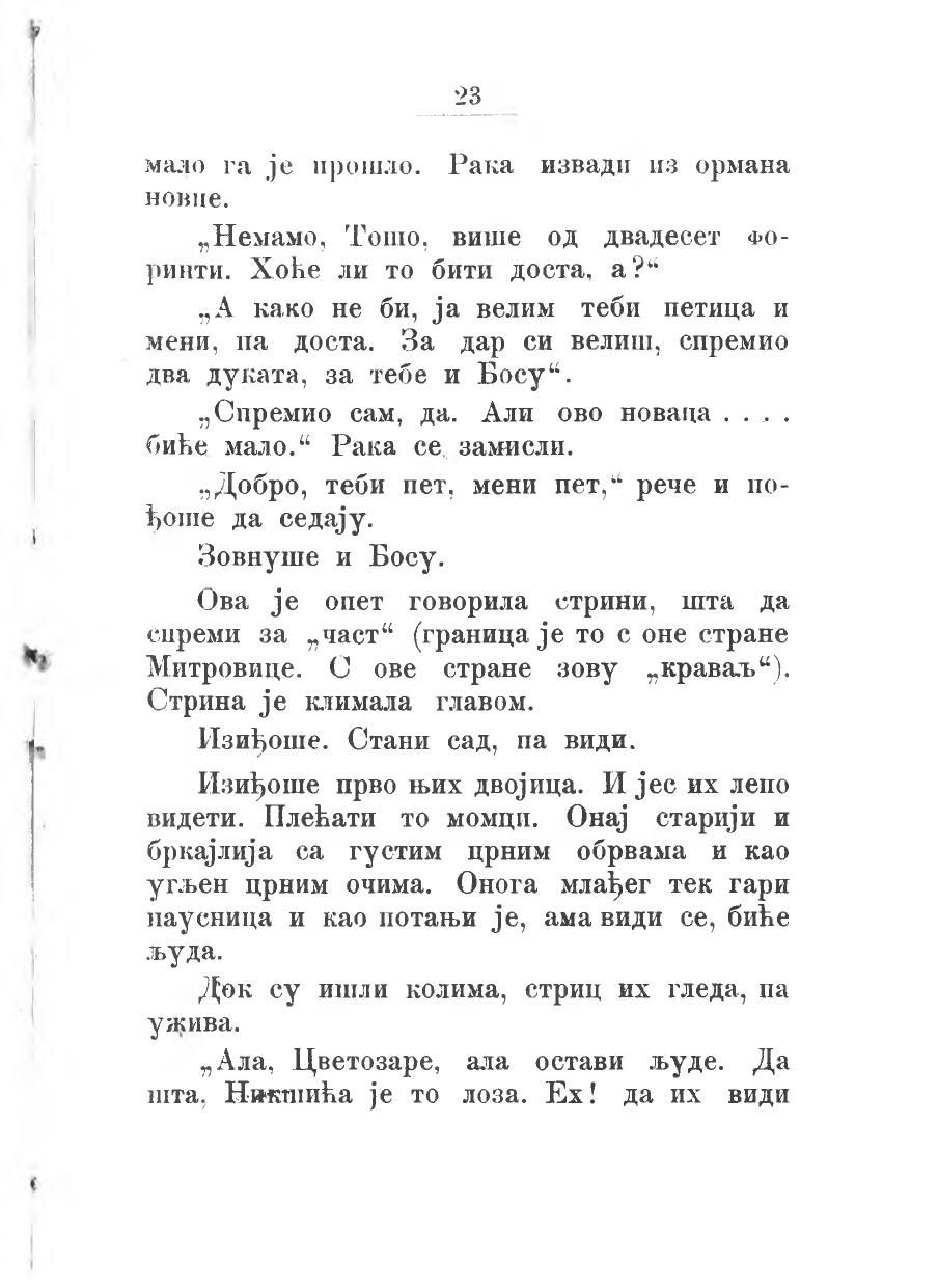 „А како не би, ја велим теби петица и мени, па доста. За дар си велиш, спремио два дуката, за тебе и Босу“.