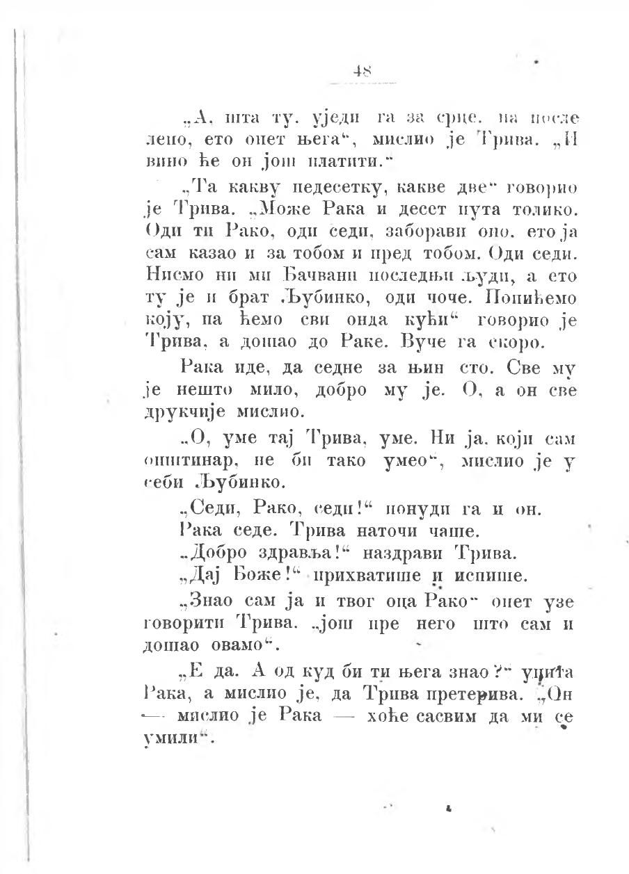 „Знао сам ја и твог оца Рако" опет узе говорити Трива. „још пре него што сам и дошао овамо“. -