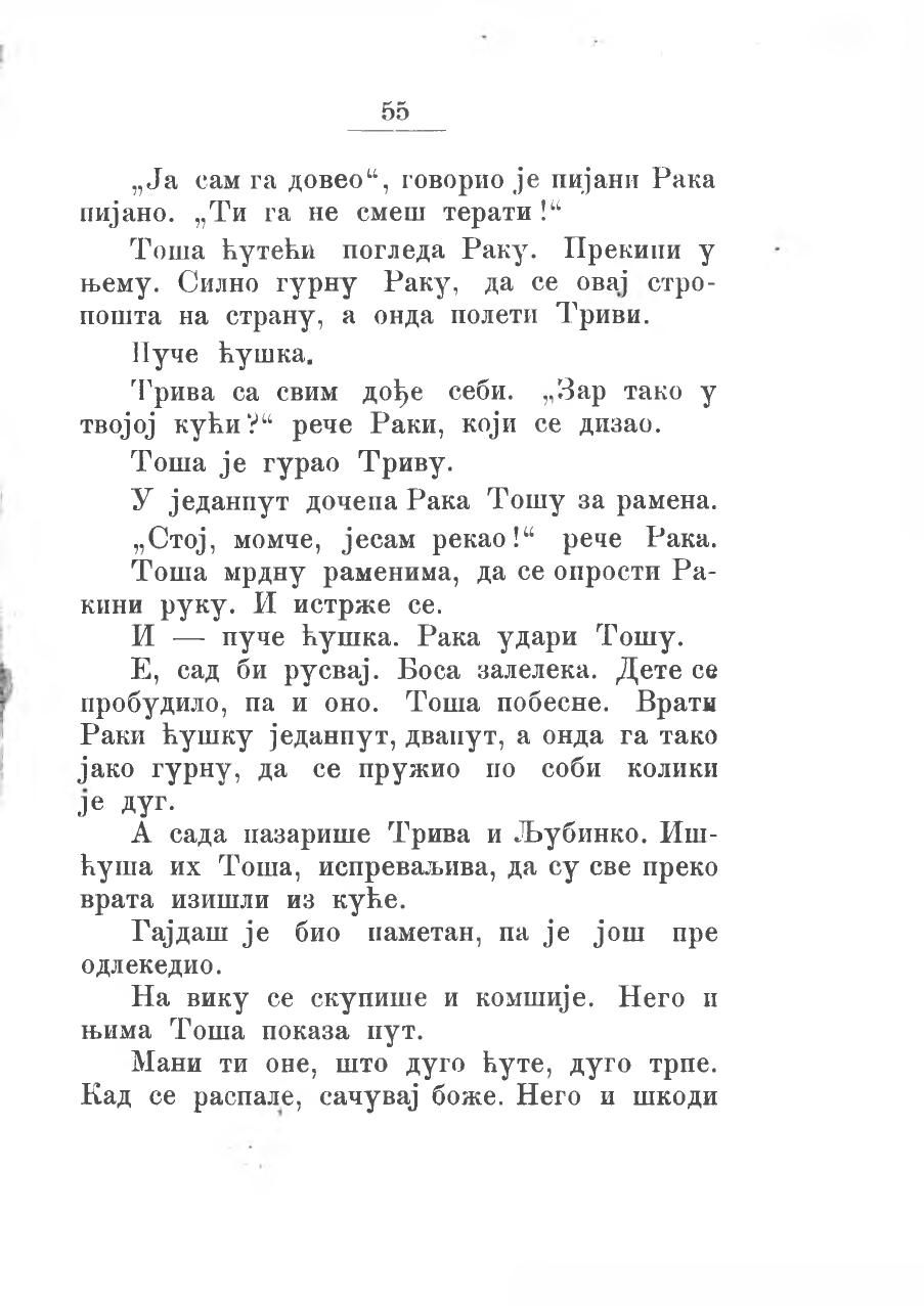 Тоша се опет замислио, како ће бити, ако оде одавде. Све све, него му је само било жао Босе. „Пропашће она, изешће се“ мислио је он.