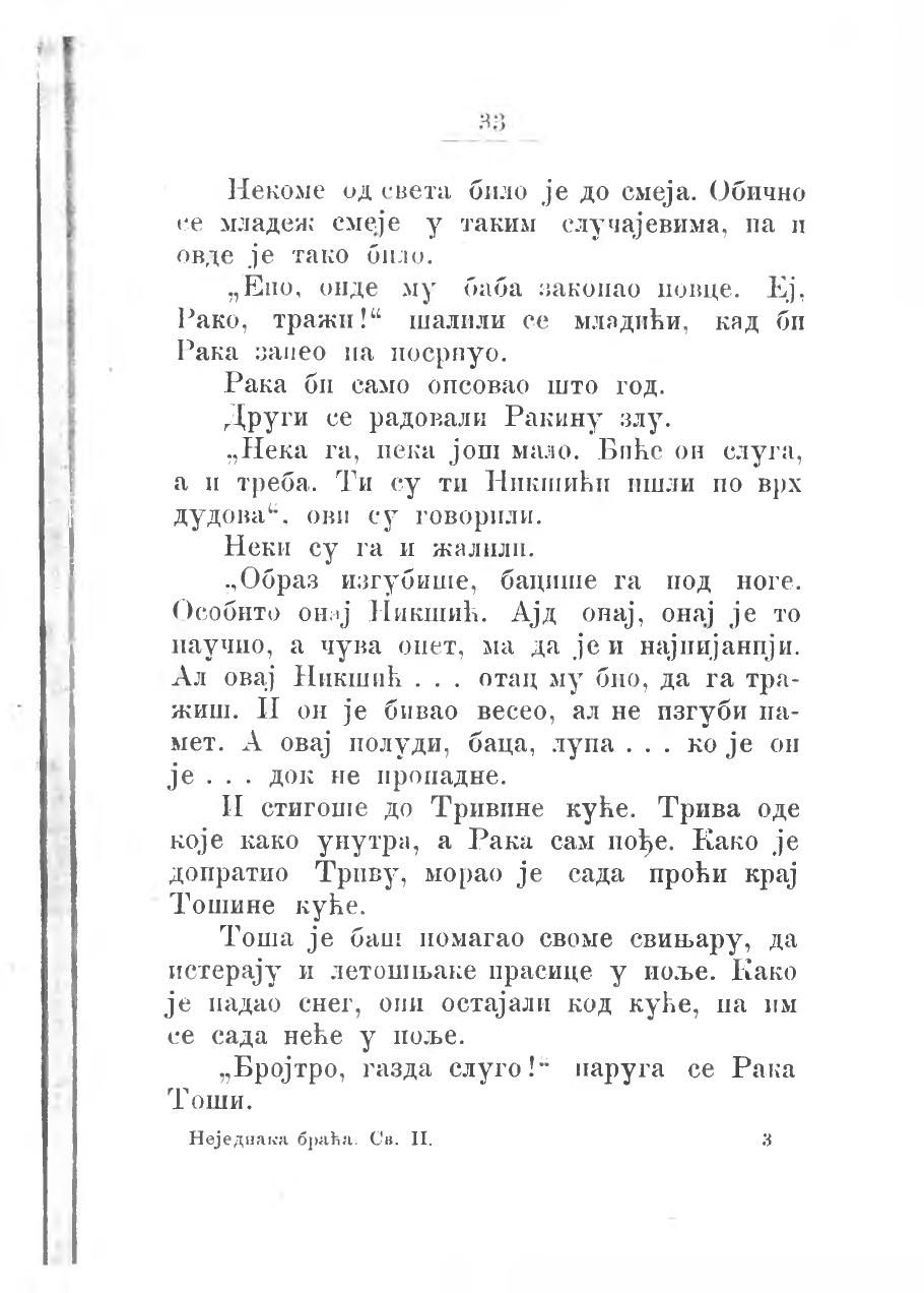 И стигоше до Тривине куће. Трива оде које како унутра, а Рака сам пође. Како је допратио Триву, морао је сада проћи крај Тошине куће.
