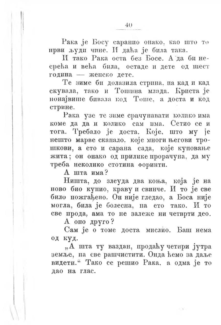И тако Рака оста без Босе. А да би несрећа и већа била, остаде и дете од шест година — женско дете.