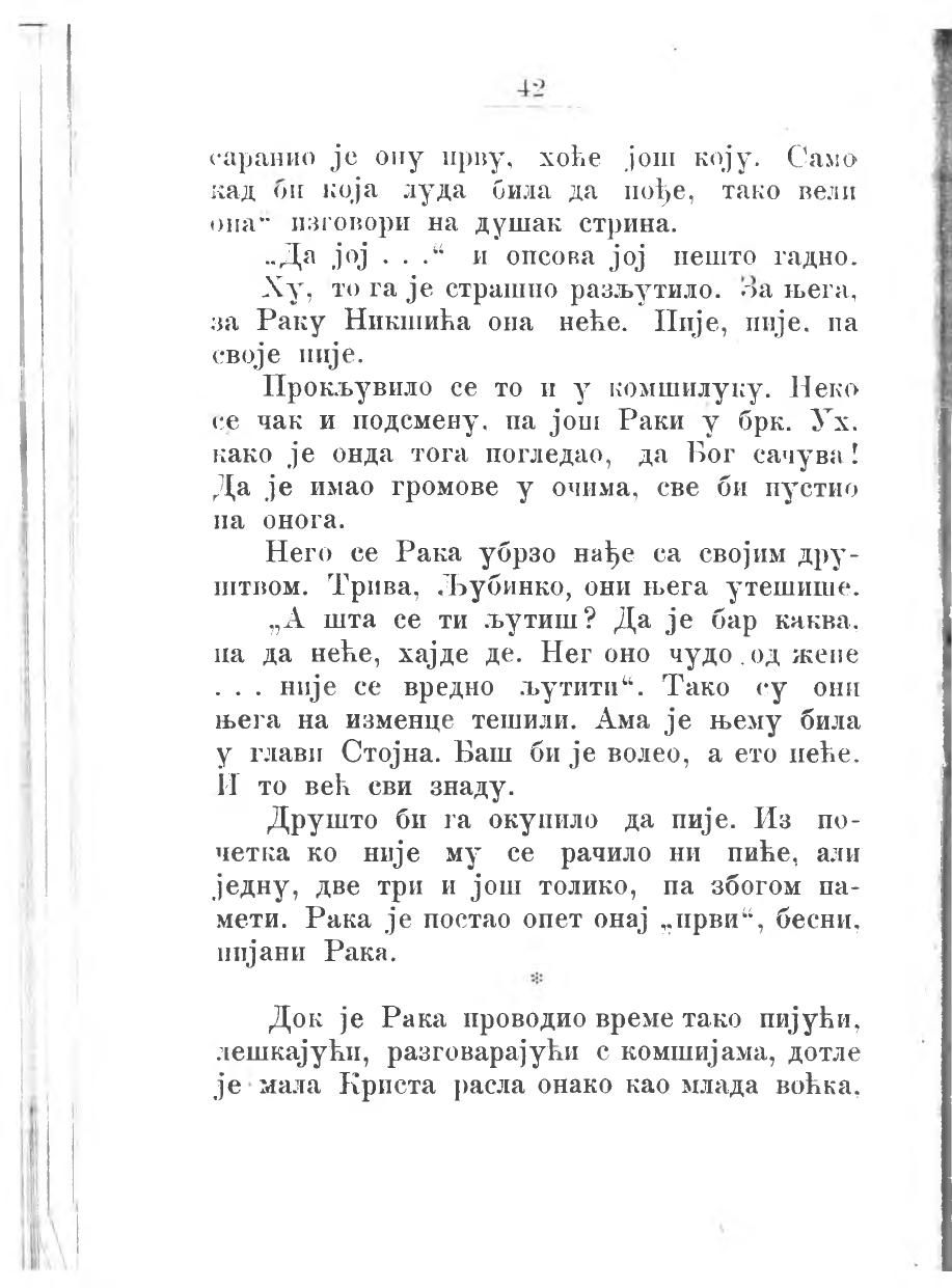 Ху, то га је страшио разљутило. За њега, за Раку Никшића она неће. Пије, пије, па своје пије.
