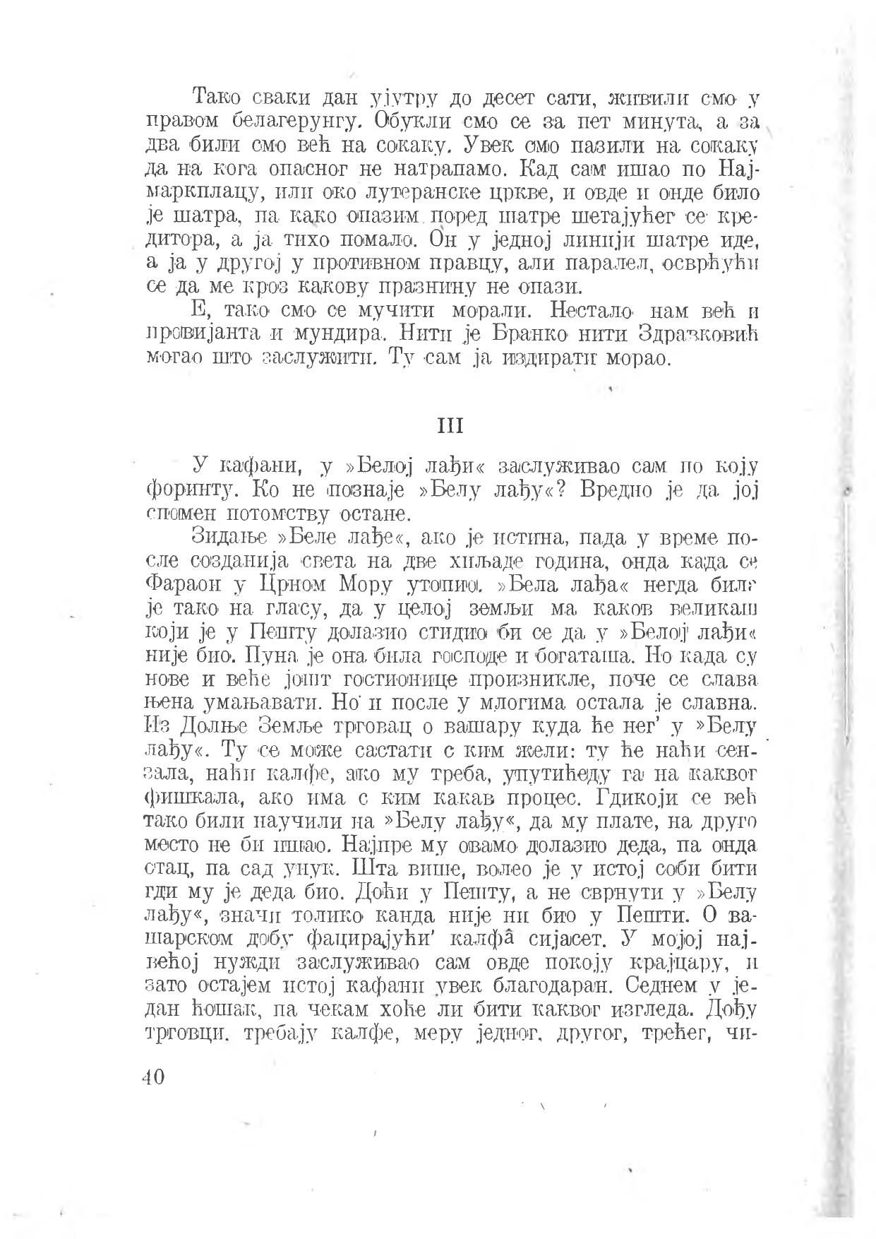 У кафани, у »Белој лађи« заслуживао сам по коју форинту. Ко не познаје »Белу лађу«? Вредно је да јој спомен потомству остане.
