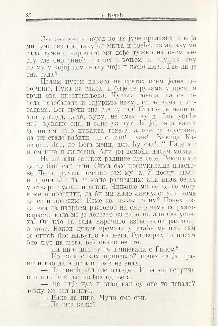 Сва она места поред којих јуче пролазих и која ми јуче све трептаху од миља и среће, изгледаху ми сада тужно; нарочито ми дође тужно на оном месту где оно синоћ стадох с коњем и слушах ону песму у којој помињаху моје и њено име... Где ли је она сада?