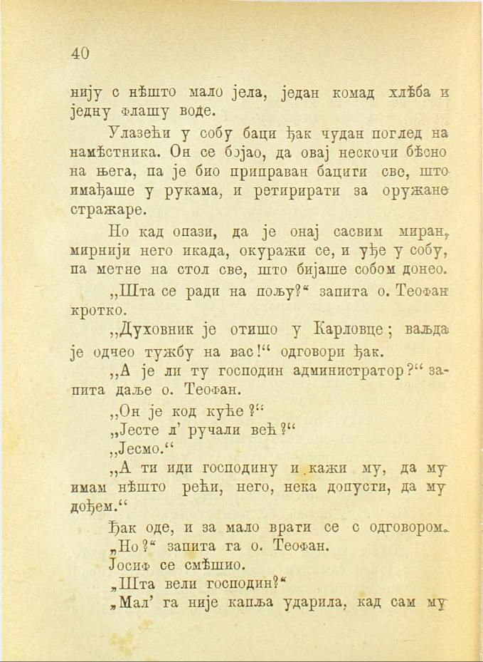 „Духовник је отишо у Карловце; ваљда је однео тужбу на вас!“ одговори ђак.
