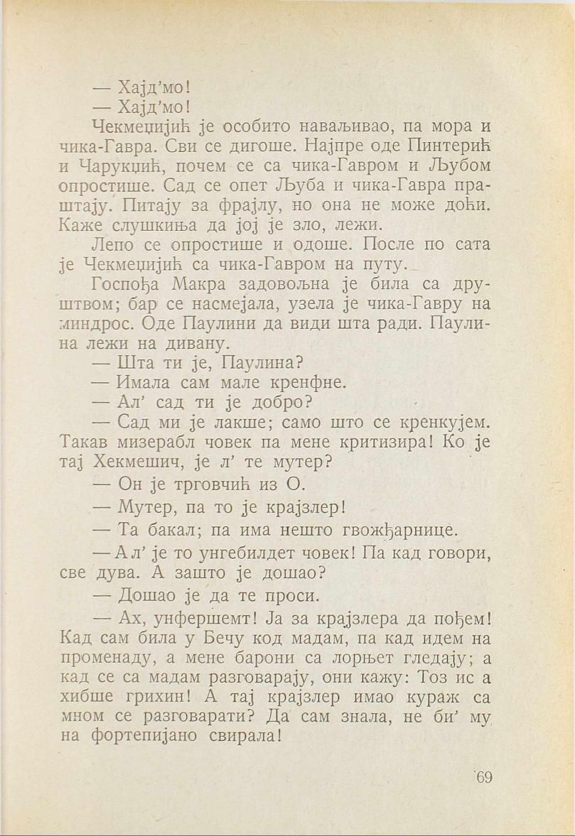 Госпођа Макра задовољна је била са друштвом; бар се насмејала, узела је чика-Гавру на миндрос. Оде Паулини да види шта ради. Паулина лежи на дивану.
