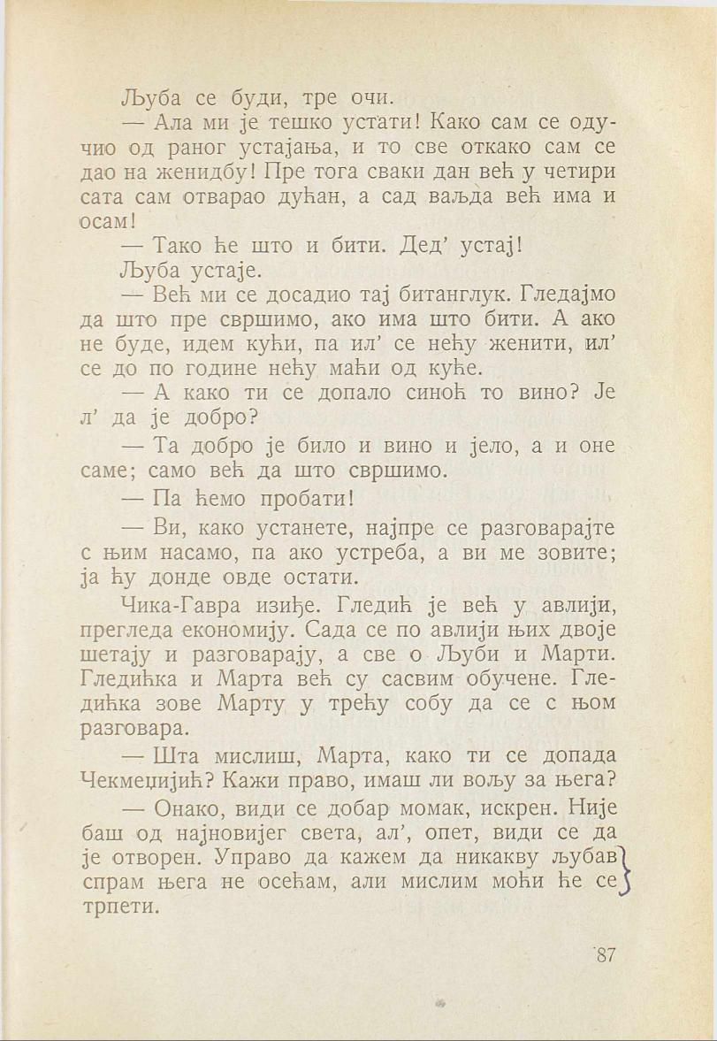 — Већ ми се досадио тај битанглук. Гледајмо да што пре свршимо, ако има што бити. А ако не буде, идем кући, па ил’ се нећу женити, ил’ се до по године нећу маћи од куће.