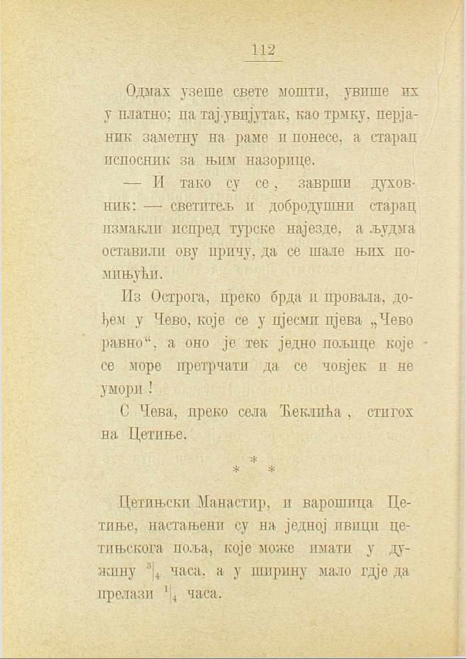 Из Острога, преко брда и провала, дођем у Чево, које се у пјесми пјева „Чево равно", а оно је тек једно пољице које се море претрчати да се човјек и не умори!