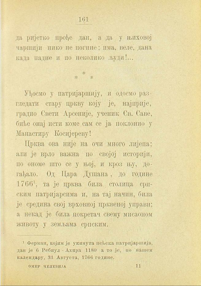 Уђосмо у патријаршију, и одосмо разгледати стару цркву коју је, најприје, градио Свети Арсеније, ученик Св. Саве, биће онај исти коме сам се ја поклонио у Манастиру Косијереву!