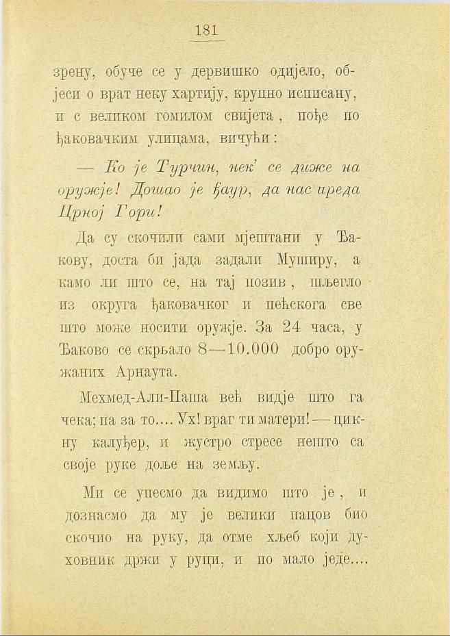 Мехмед-Али-Паша већ видје што га чека; па за то.... Ух! враг ти матери! — цикну калуђер, и жустро стресе нешто са своје руке доље на земљу.