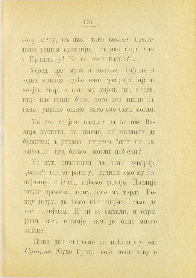 десну, па нас, тако везане, предадоше једном суварији, да нас тјера пак у Приштину! Ко се томе надао?!..
