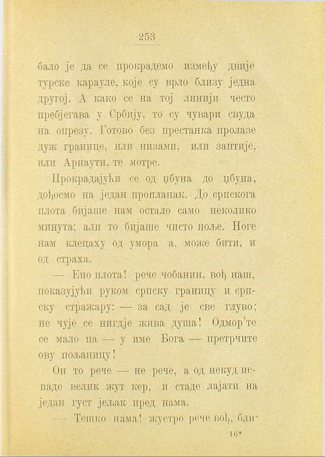 је да се прокрадемо између двије турске карауле, које су врло близу једна другој. А како се на тој линији често пребјегава у Србију, то су чувари свуда на опрезу. Готово без престанка пролазе дуж границе, или низами, или заптије, или Арнаути, те мотре.