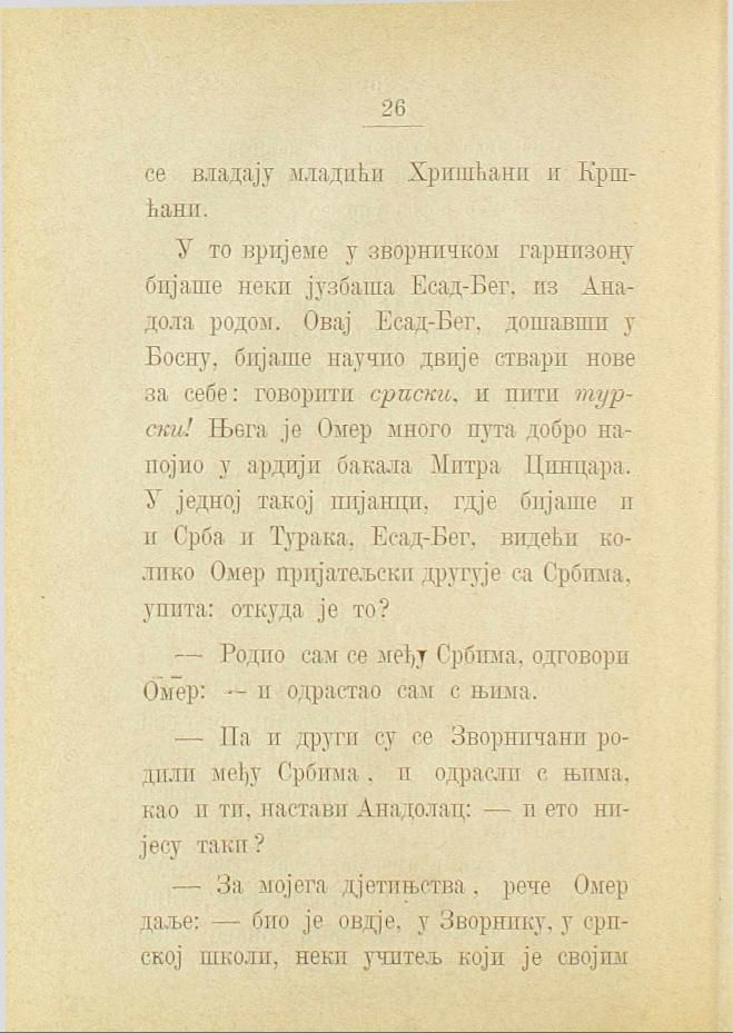 — За мојега дјетињства, рече Омер даље: — био је овдје, у Зворнику, у српској школи, неки учитељ који је својим