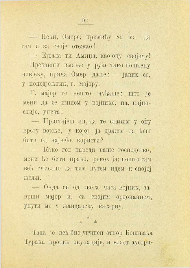 Предавши имање у руке тако поштену човјеку, прича Омер даље: — јавих се, у понедјељник, г. мајору.