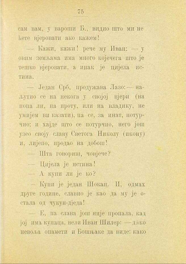 — Е, па +слава још није пропала, кад јој има купаца, вели Иван Шилер: — дако невоља опамети и Бошњаке да виде: како