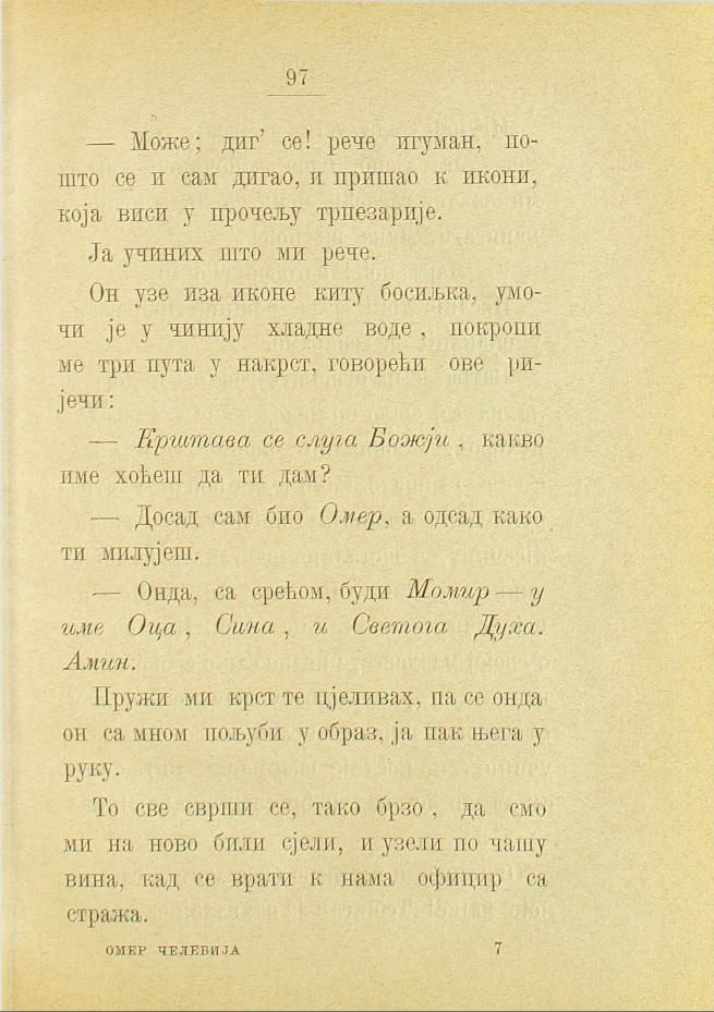 — Може; диг’ се! рече игуман, пошто се и сам дигао, и пришао к икони, која виси у прочељу трпезарије.