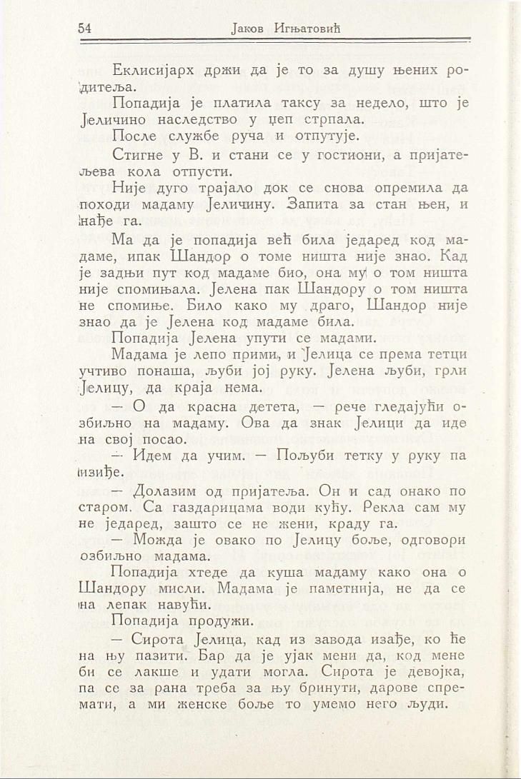 Ма да је попадија већ била једаред код мадаме, ипак Шандор о томе ништа није знао. Кад је задњи пут код мадаме био, она му о том ништа није спомињала. Јелена пак Шандору о том ништа не спомиње. Било како му драго, Шандор није знао да је Јелена код мадаме била.