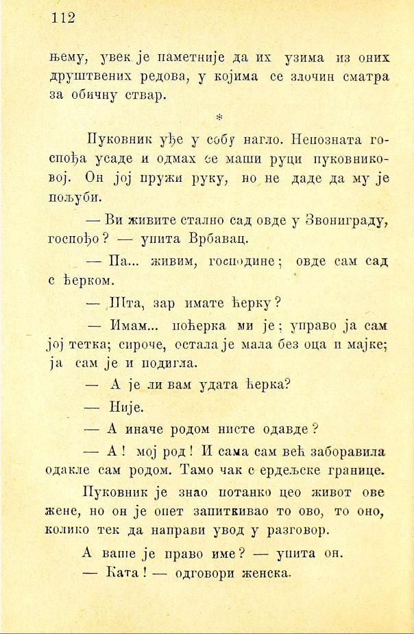 Пуковник је знао потанко цео живот ове жене, но он је опет запиткивао то ово, то оно, колико тек да направи увод у разговор.