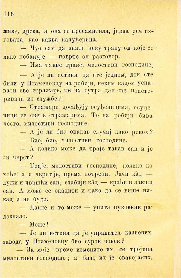 - А је ли истина да сте једном, док сте били у Пламеновцу на робији, неким кадом успавали све стражаре, те их сутра дан све поистеривали из службе?