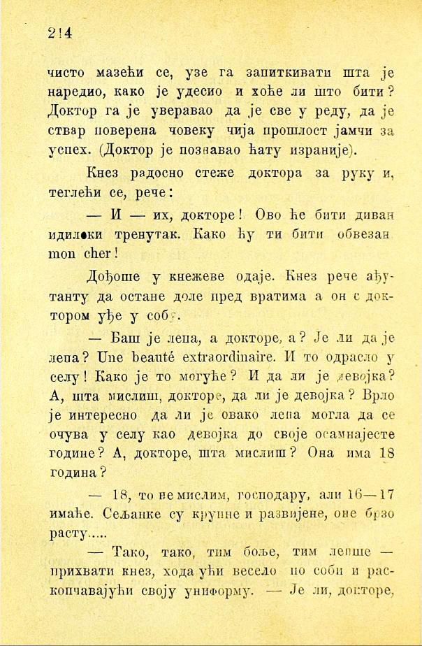 Кнез радосно стеже доктора за руку и, теглећи се, рече: