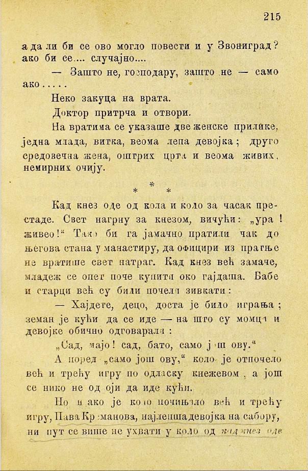 Но и ако је коло почињало већ и трећу игру, Пава Крсманова, најлепша девојка на сабору, ни пут се више не ухвати у коло од кад кнез оде.