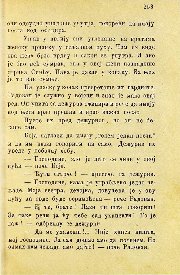 На уласку у конак пресретоше их гардисте. Радован је служио у војсци и знао је мало овај ред. Он упита за дежурна официра и рече да имају код њега врло прешна и врло важна посао.