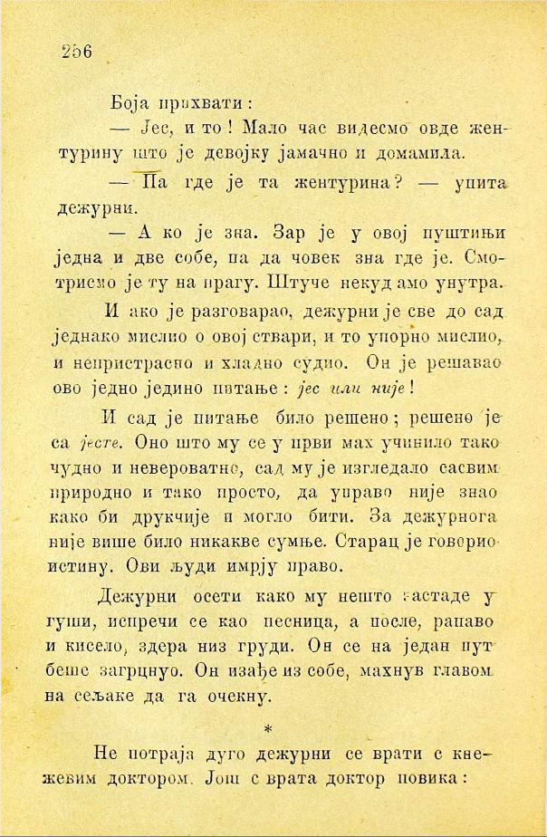 И сад је питање било решено; решено је са јесте. Оно што му се у први мах учинило тако чудно и невероватно, сад му је изгледало сасвим природно и тако просто, да управо није знао како би друкчије и могло бити. За дежурнога није више било никакве сумње. Старац је говорио истину. Ови људи имају право.