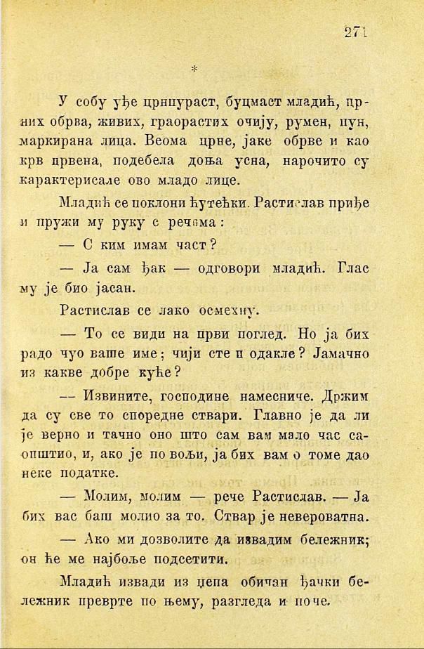 — Молим, молим — рече Растислав. — Ја бих вас баш молио за то. Ствар је невероватна.