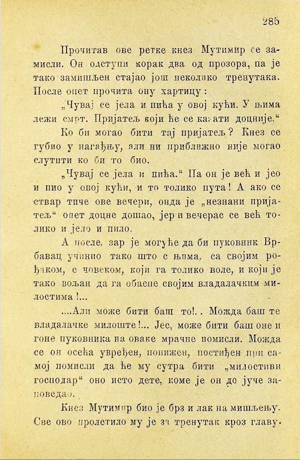 Прочитав ове ретке кнез Мутимир се замисли. Он одступи корак два од прозора, па је тако замишљен стајао још неколико тренутака. После опет прочита ону хартицу: