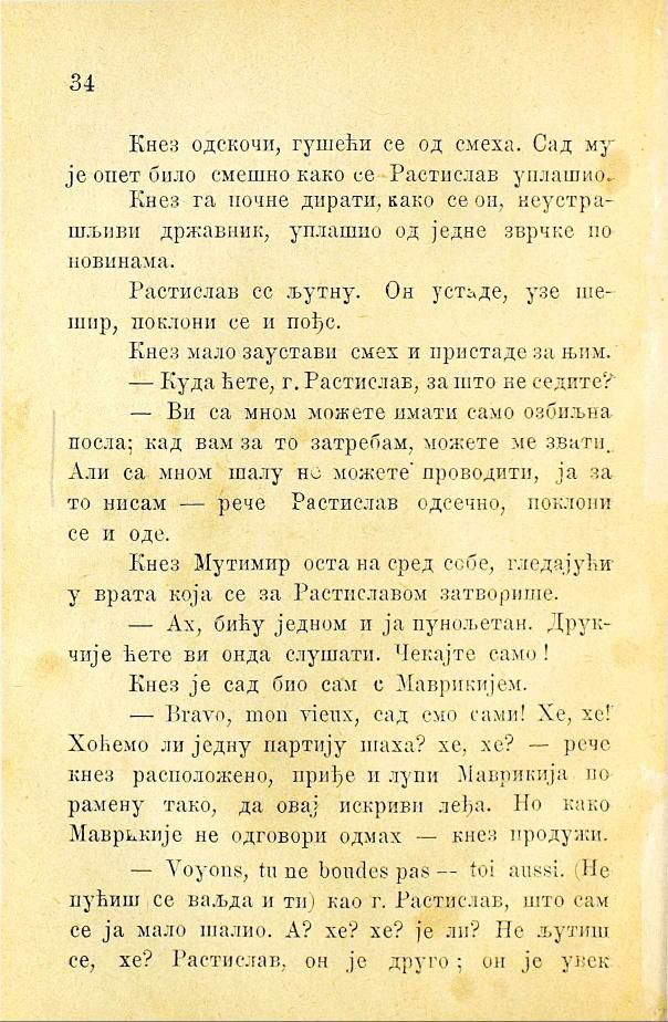 - Ви са мном можете имати само озбиљна посла; кад вам за то затребам, можете ме звати. Али са мном шалу но можете проводити, та за то нисам — рече Растислав одсечно, поклони се и оде.