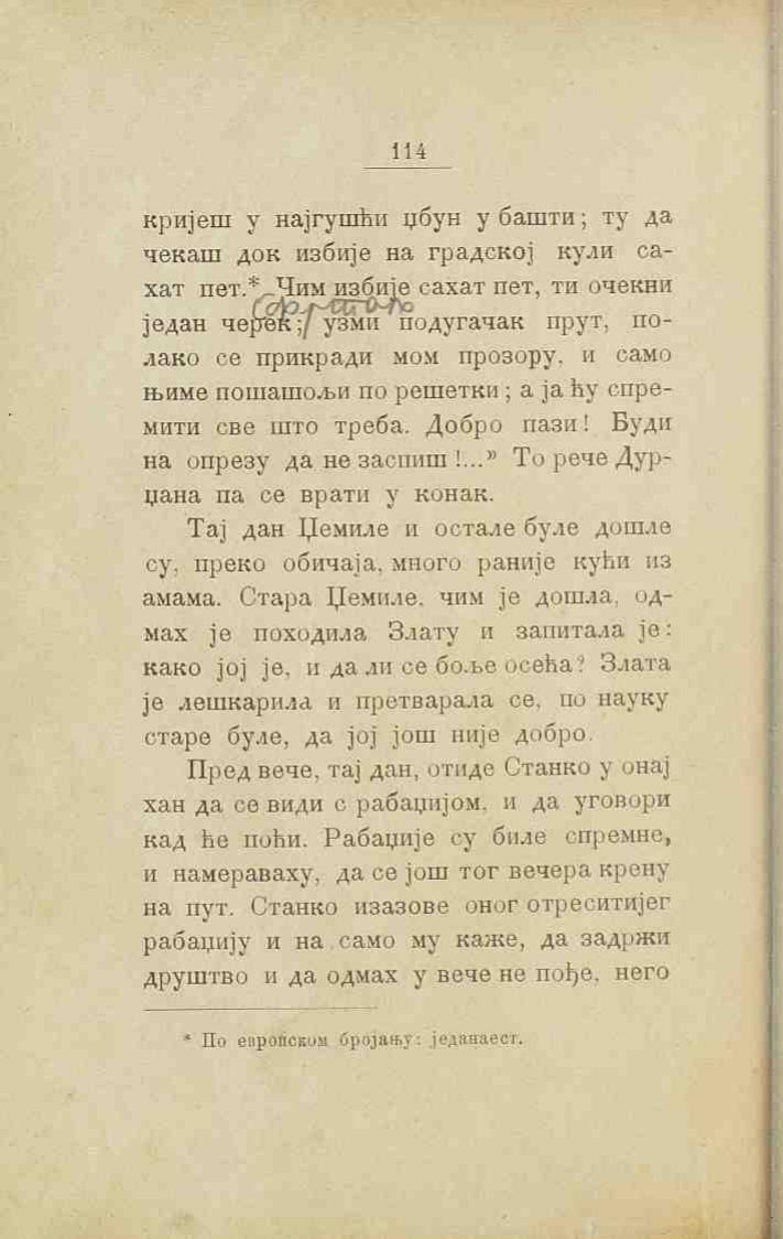 Тај дан Џемиле и остале буле дошле су, преко обичаја, много раније кући из амама. Стара Џемиле, чим је дошла, одмах је походила Злату и запитала је: како јој је, и да ли се боље осећа? Злата је лешкарила и претварала се, по науку старе буле, да јој још није добро.