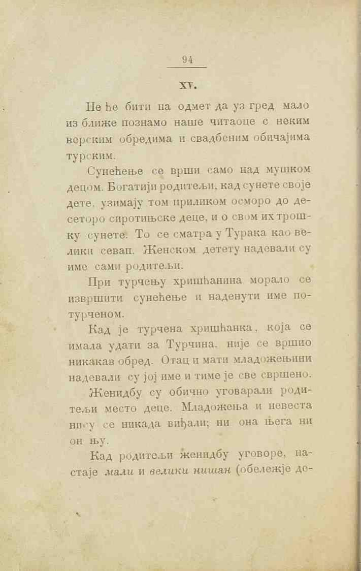 Не ће бити на одмет да уз гред мало из ближе познамо наше читаоце с неким верским обредима и свадбеним обичајима турским.