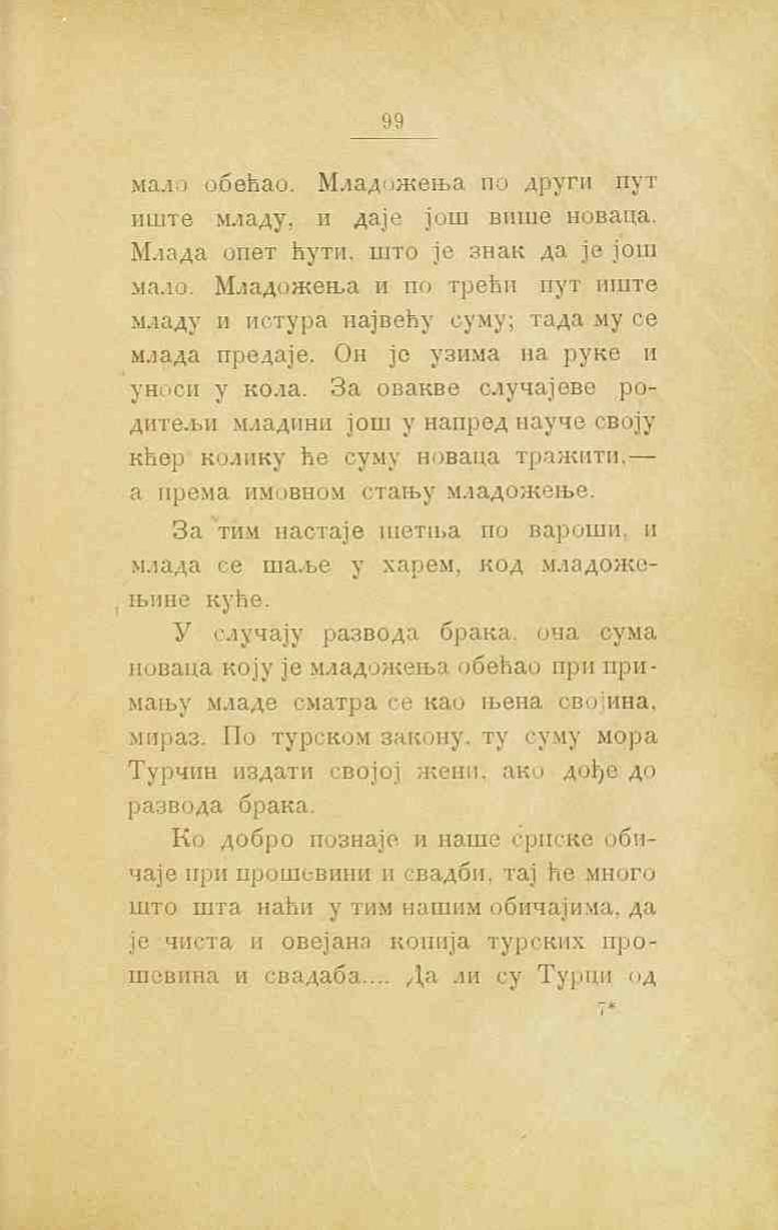Ко добро познаје и наше српске обичаје при прошевини и свадби, тај ће много што шта наћи у тим нашим обичајима, да је чиста и овејана копија турских прошевина и свадаба.... Да ли су Турци од