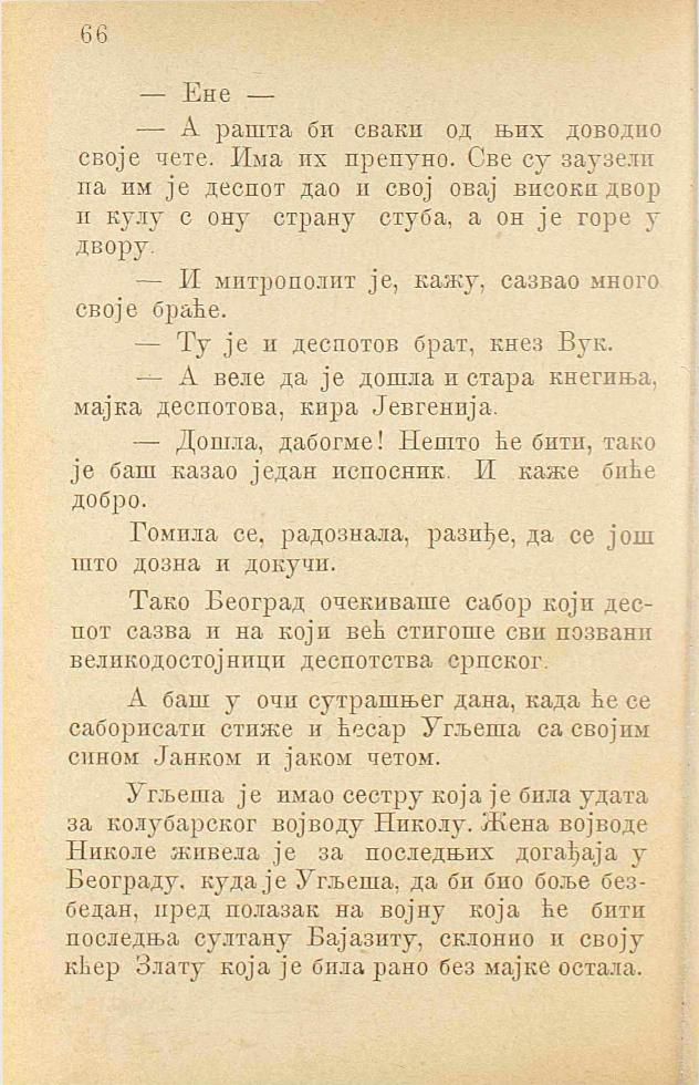 — А веле да је дошла и стара кнегиња, мајка деспотова, кира Јевгенија.